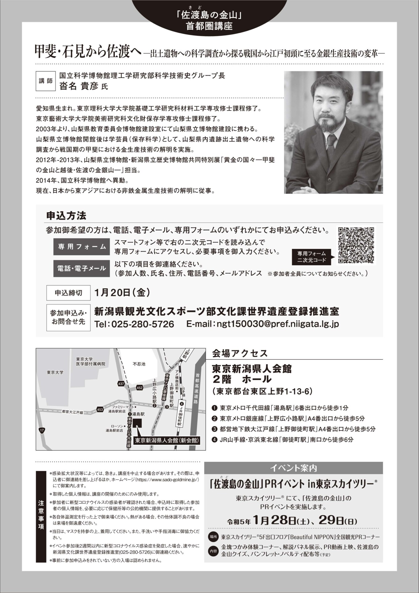 「佐渡島の金山」首都圏講座を東京都(東京新潟県人会館)にて開催します。